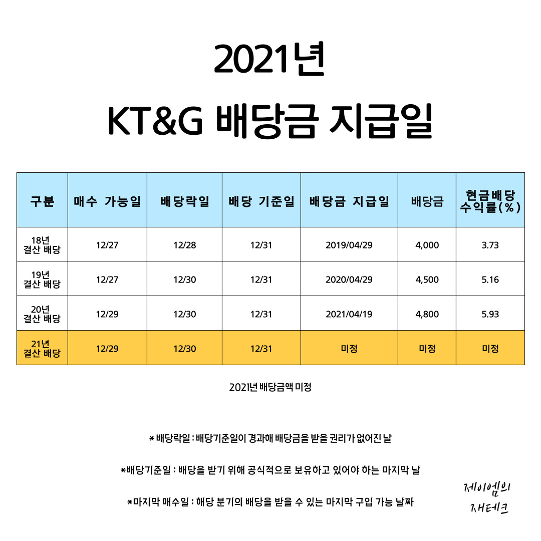 2021년 KT&G의 배당 기준일은 12년 31일입니다.
