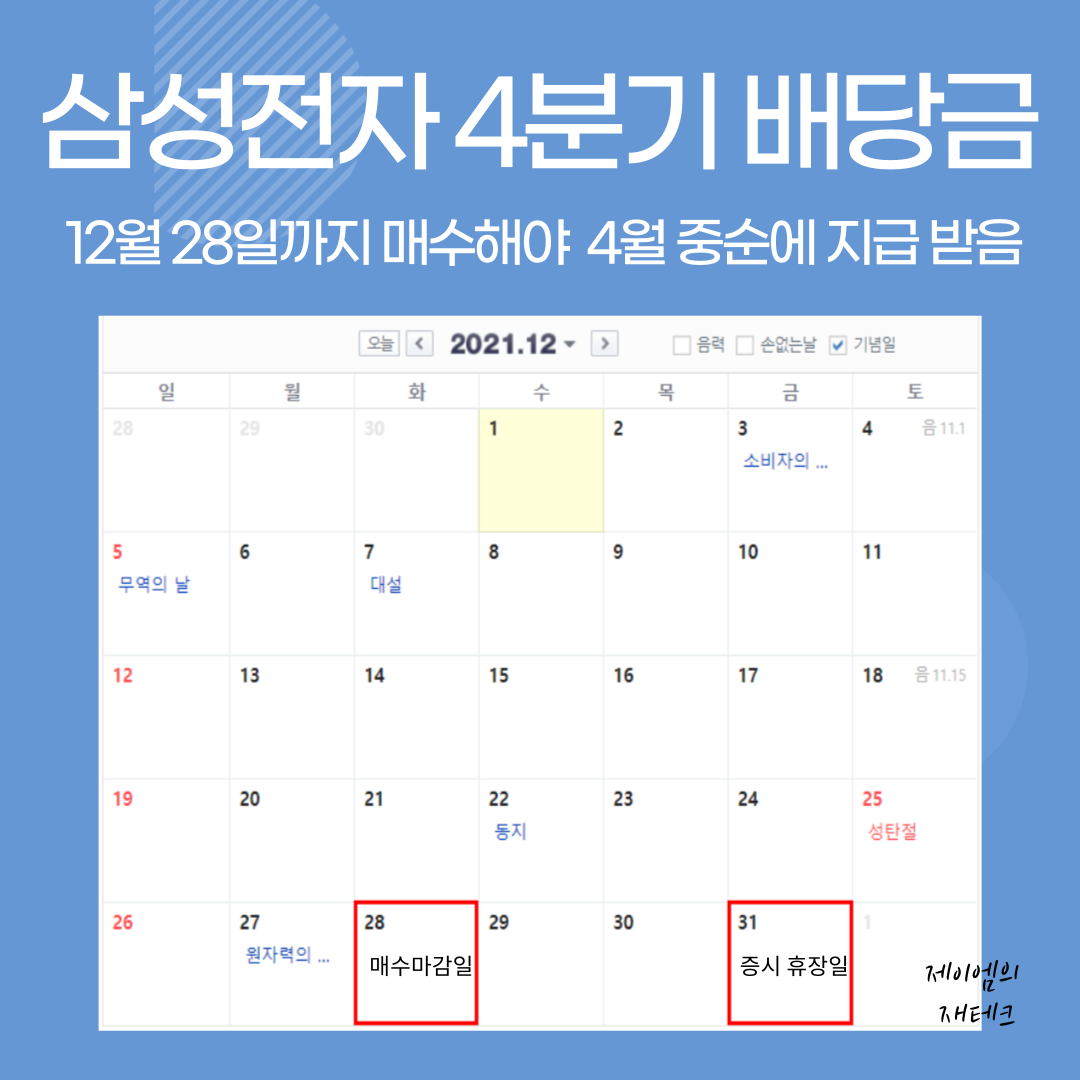 명실상부 우리나라 최고의 기업 삼성전자, 직장 다니고 주식 시작한 분들 중에 삼성전자 매수 안 해본 사람이 없을 정도로 국민주식이 되었는데요. 이제 막 재테크에 눈을 떠 주식을 시작하신 분들이라면 배당금에도 이따금 관심을 갖게 됩니다. 이에 관련 어려운 용어와 실질적으로 언제 사고 언제 받는지 알기 쉽게 정리해보는 시간을 가져보겠습니다.